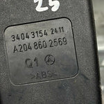 This is a Mercedes Benz C Class rear seat belt buckle for the left NSR, compatible with W204 chassis, with a part number of 2048602569.