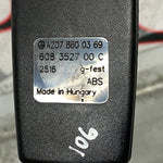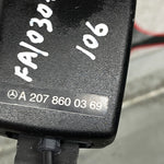 This is a rear seat belt buckle for the left side of a Mercedes Benz E Class, chassis code W207, with part number A2078600369.